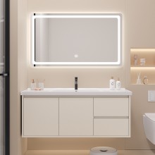 智能奶油陶瓷一體盆衛(wèi)生間浴室柜鏡柜組合輕奢簡約洗手臉盆洗漱臺(tái)